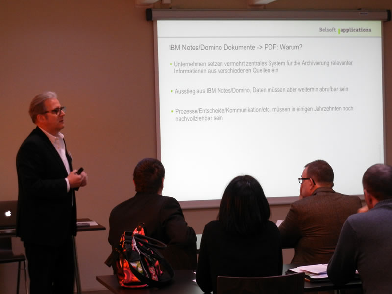 Als Vortrag aus Kundensicht präsentierte Hans Mäder von der Provida Treuhand AG sehr anschaulich, weshalb IBM Sametime (Realtime Collaboration) auch für KMU Sinn macht und welchen Nutzen sie nun daraus ziehen. Seitens Belsoft präsentierten mehrere Fachspezialisten aktuelle Themen wie Single Sign-On oder neue Möglichkeiten im Entwicklungsumfeld. Sandra Bühler’s ganz persönliche Connect Nachlese durfte natürlich auch nicht fehlen.